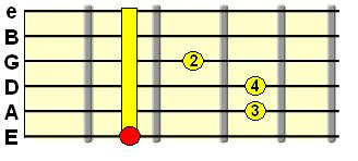 Just like before, your barring finger acts as the nut, or capo, so you can position that whole shape wherever you need on the fretboard.